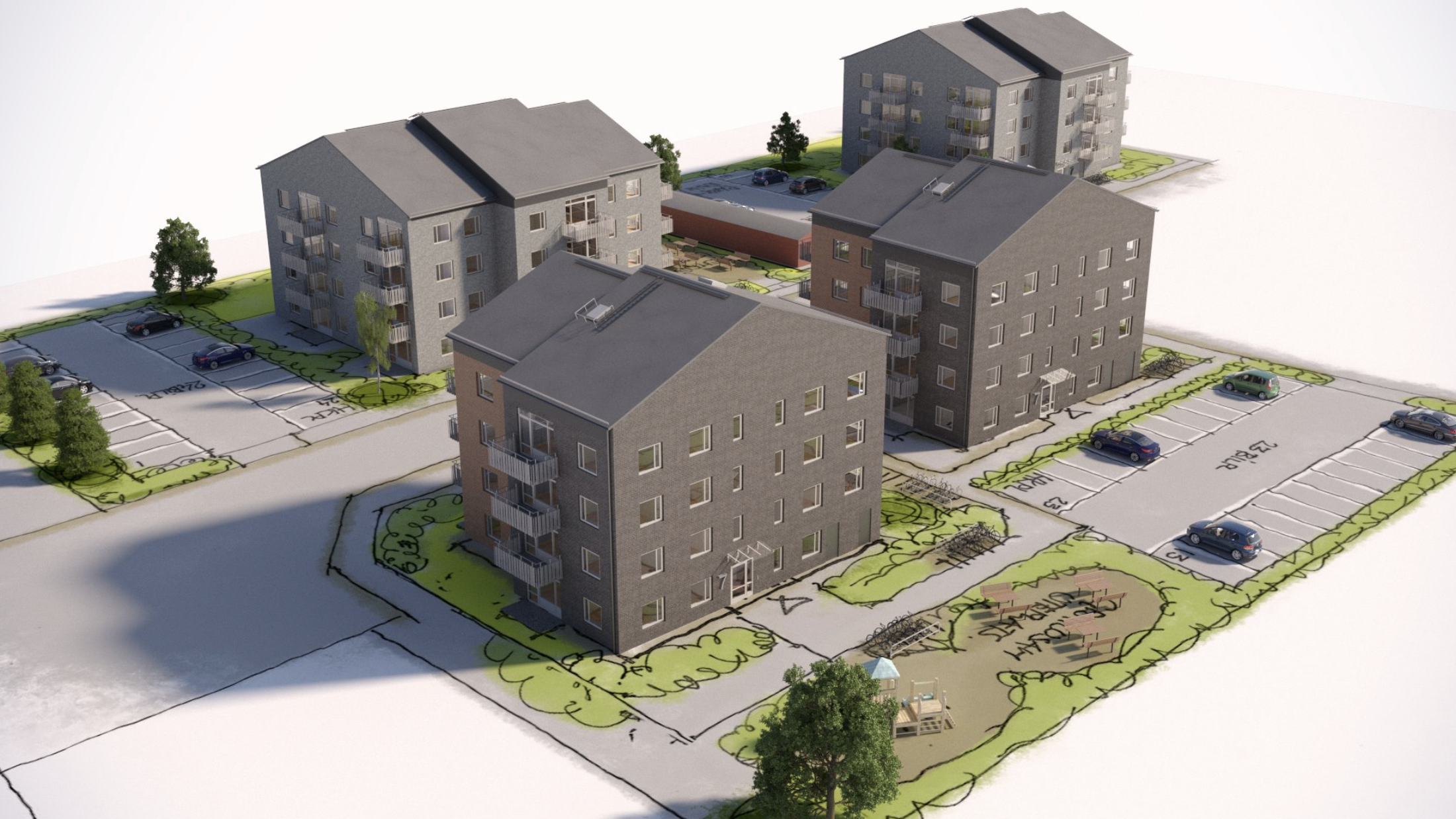 Tillsammans med JSB och SABO bygger vi nyckelfärdiga flerbostadshus.