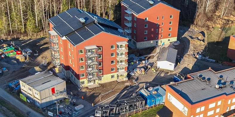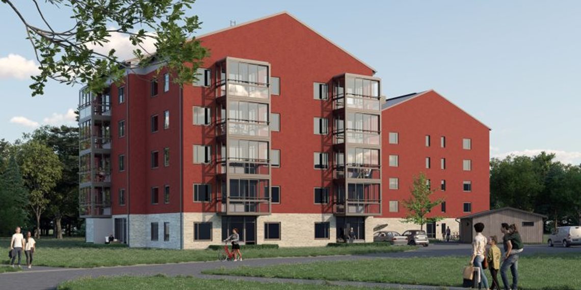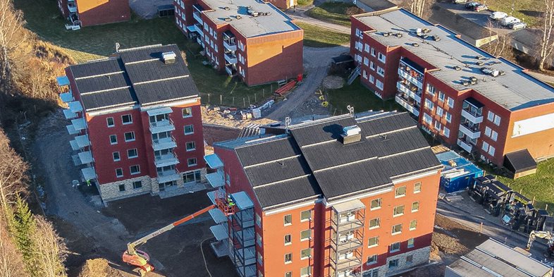 Smidmek monterar stommarna till två femvåningshus med totalt 50 lägenheter.