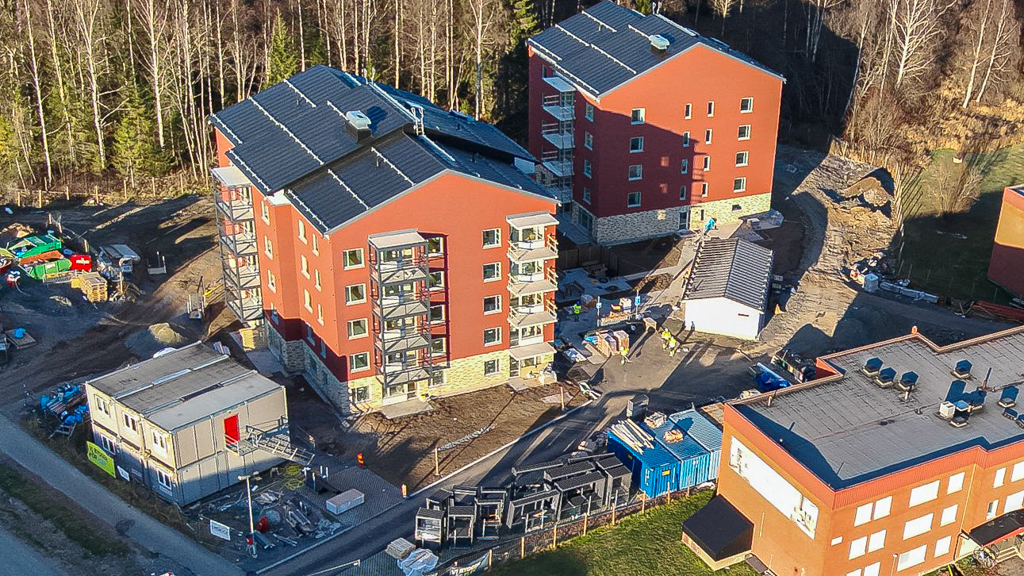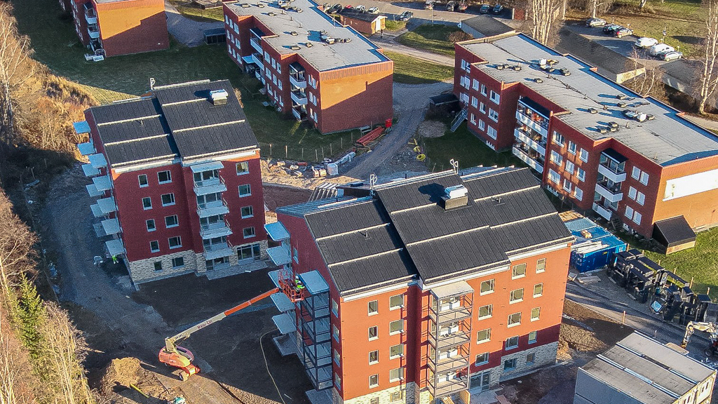 Smidmek monterar stommarna till två femvåningshus med totalt 50 lägenheter.