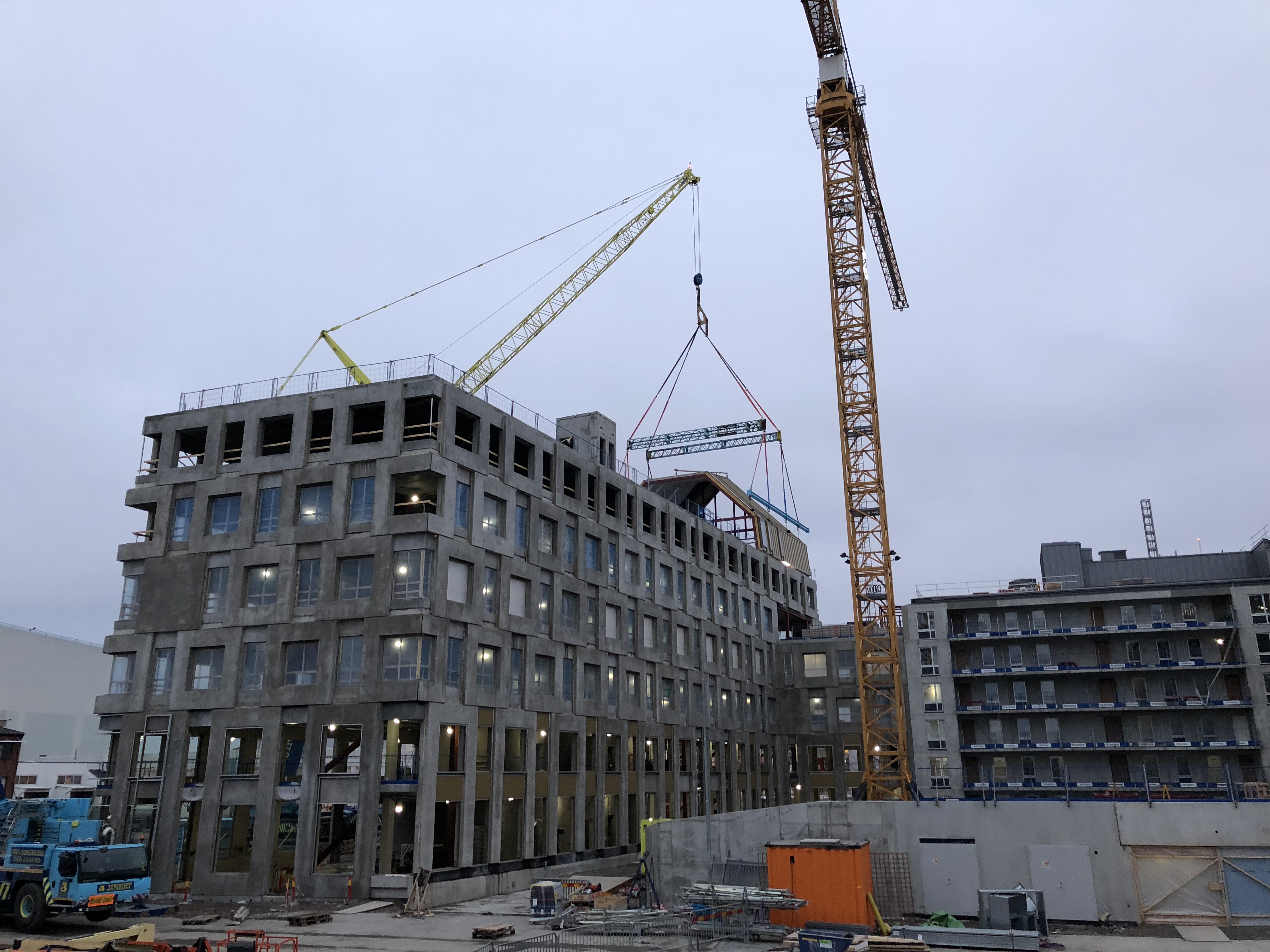 Totalentreprenad stomme, stål och betong. Kontorshus om totalt åtta våningar med källare och garage.