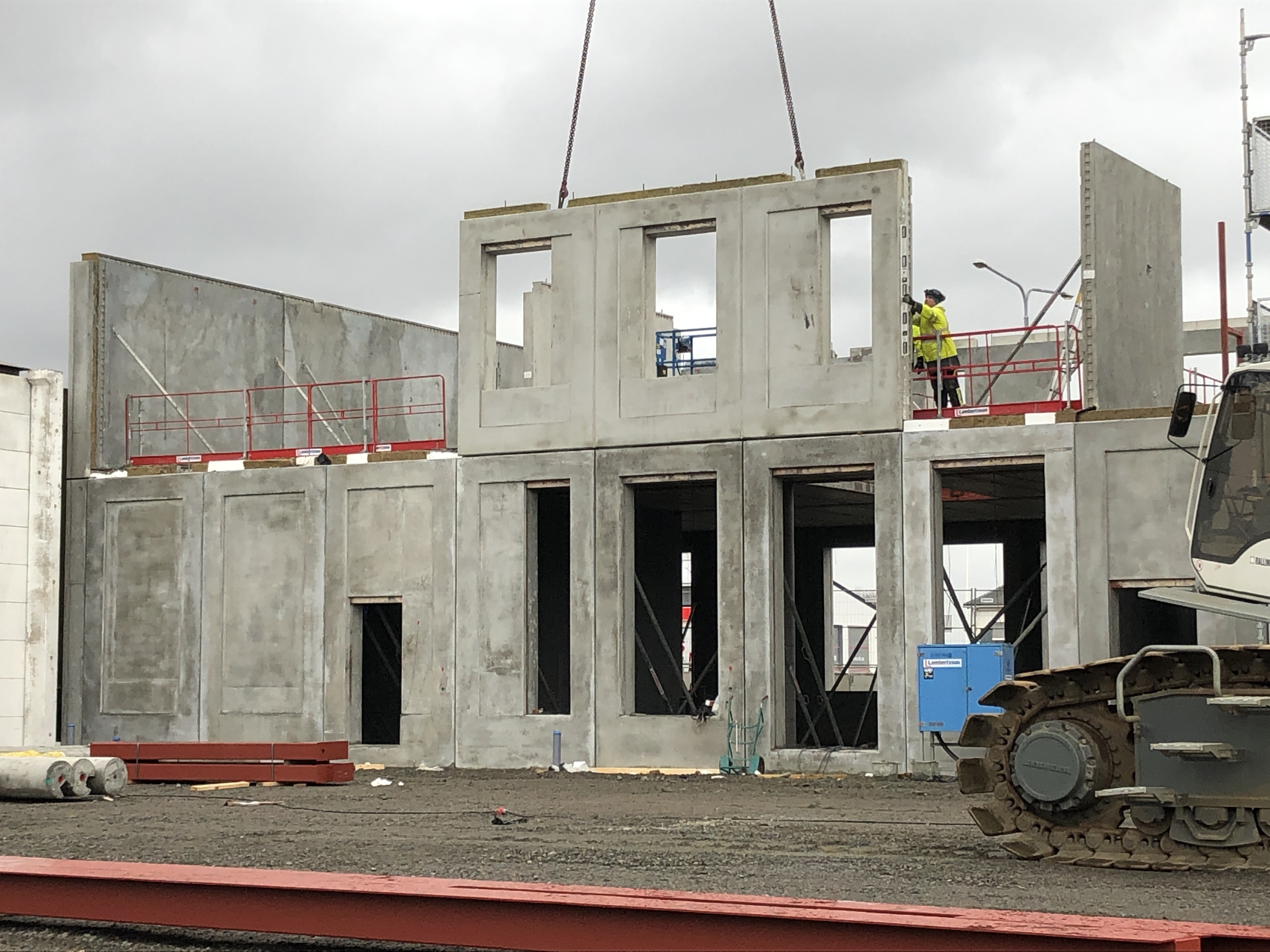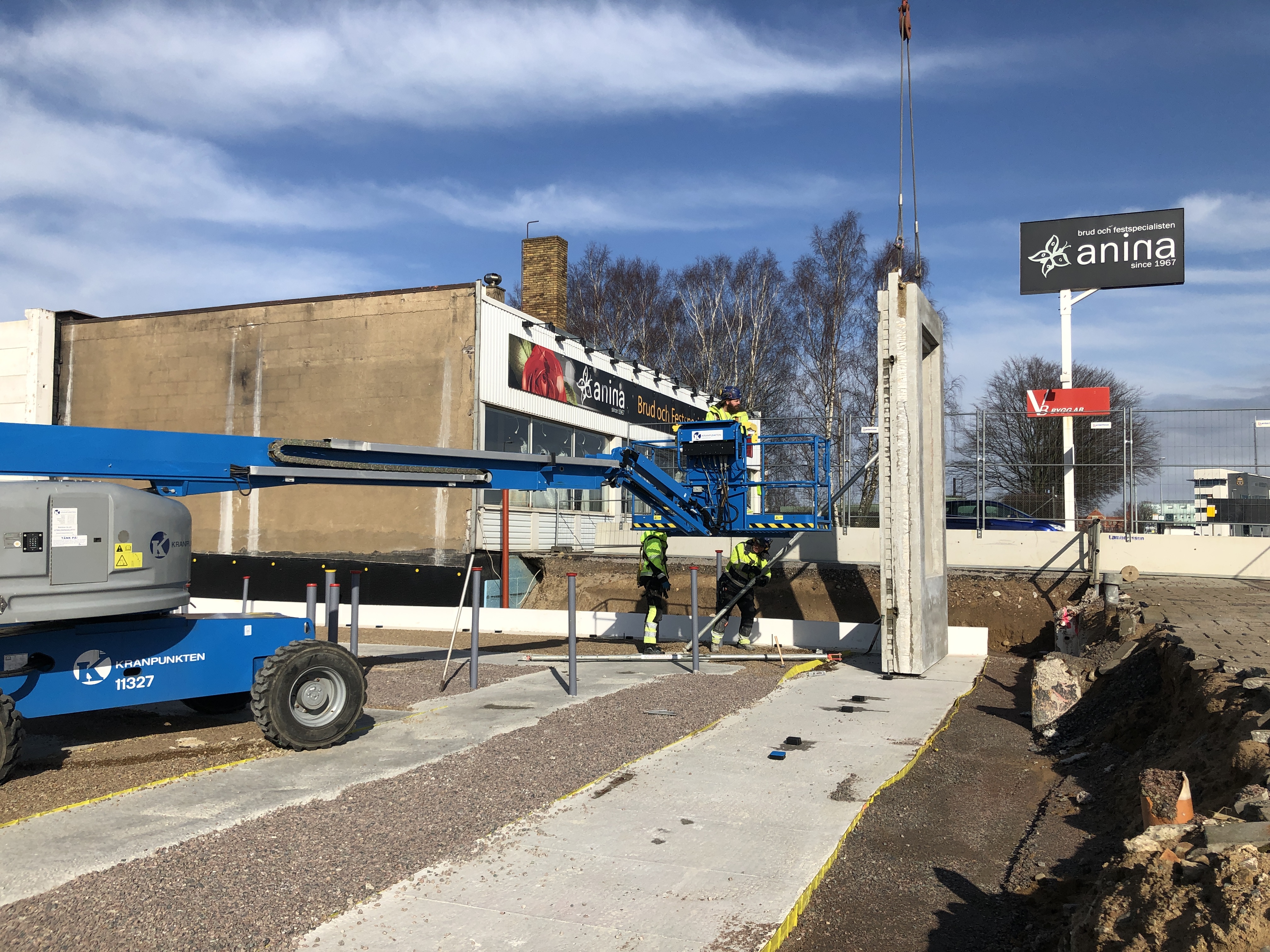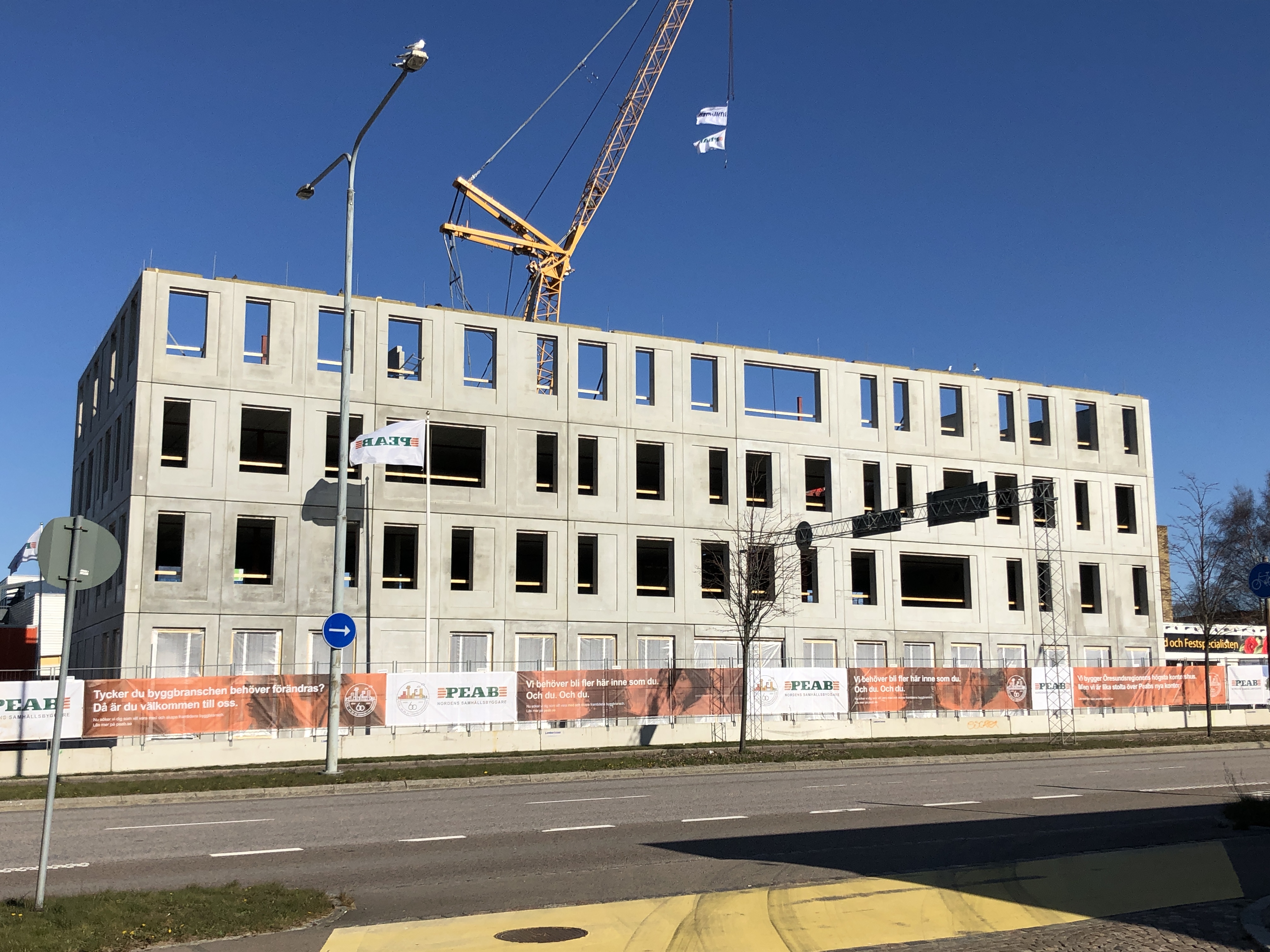 Fasadutseende är i betongliknande kulör. Det har varit ett bra samarbete med plats- och projektledning.