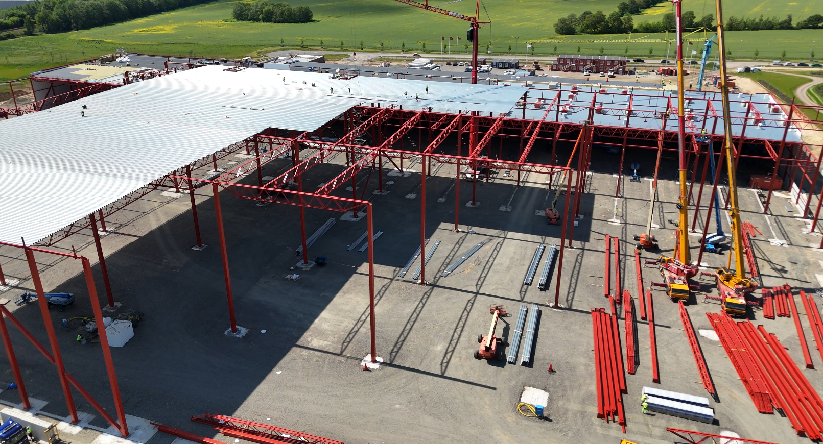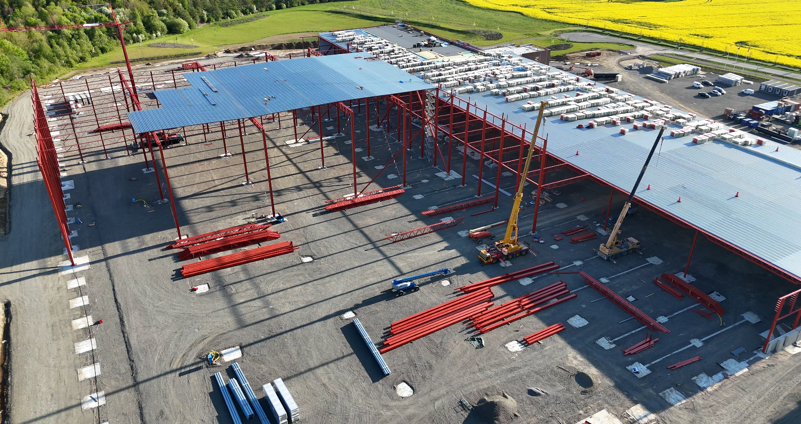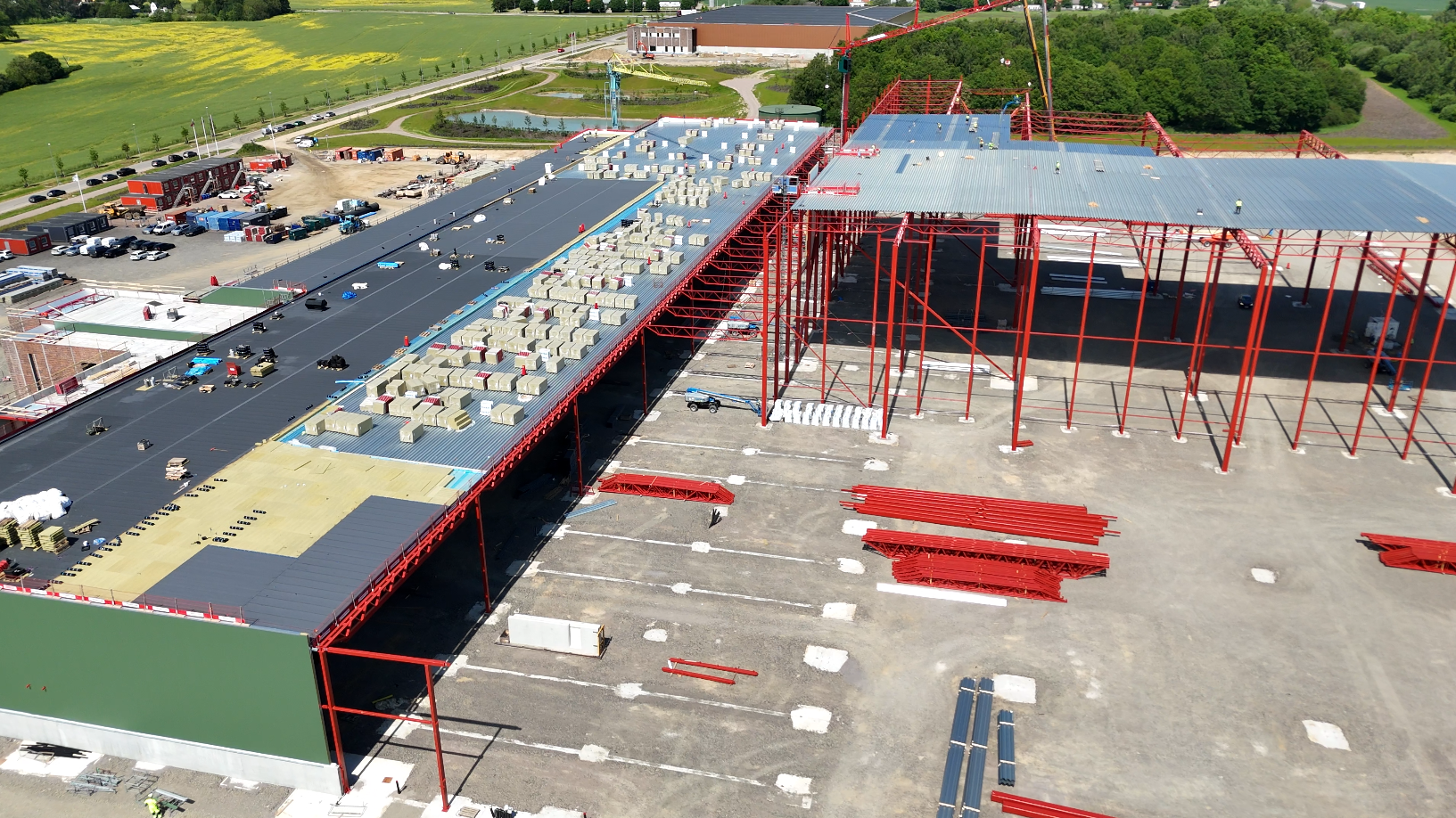 Till Smidmeks största logistikprojekt någonsin monteras takplåt, stålstomme, betongväggar, fasad, HDF, fackverk, plåtsandwich, betongsocklar, ståltrappor, räcken och dekorprofiler.