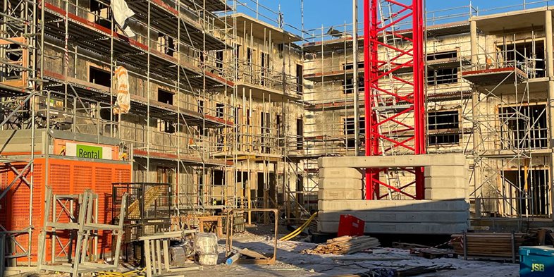 Smidmek monterar stommen till ett nytt särskilt boende i Bergsjö, med totalt 96 boendeplatser fördelade på två huskroppar om fem respektive sex våningar.