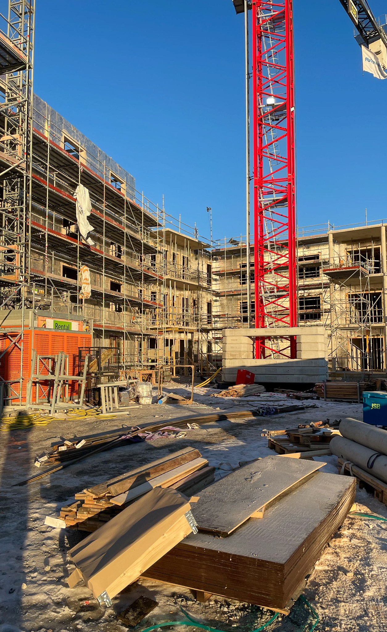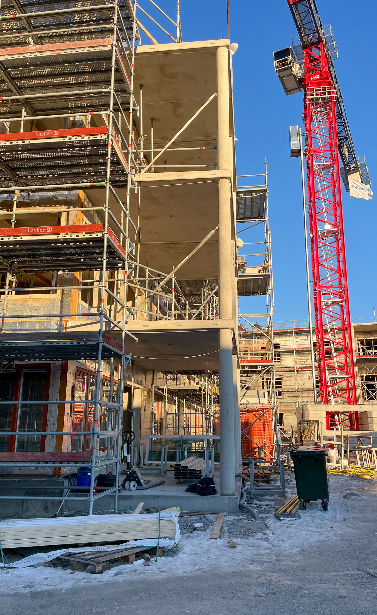 I Bergsjö pågår montaget av ett nytt särskilt boende för äldre, bestående av två sammanhängande huskroppar med fem respektive sex våningsplan och totalt 96 boendeplatser. Smidmek ansvarar för monteringen av stommen, som omfattar ytterväggar, innerväggar, plattbärlag och balkonger.
