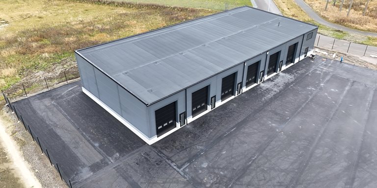 Smidmek monterar stommen till Broby 57:9, en lager- och kontorshall på 750 kvadratmeter i Åstorp.